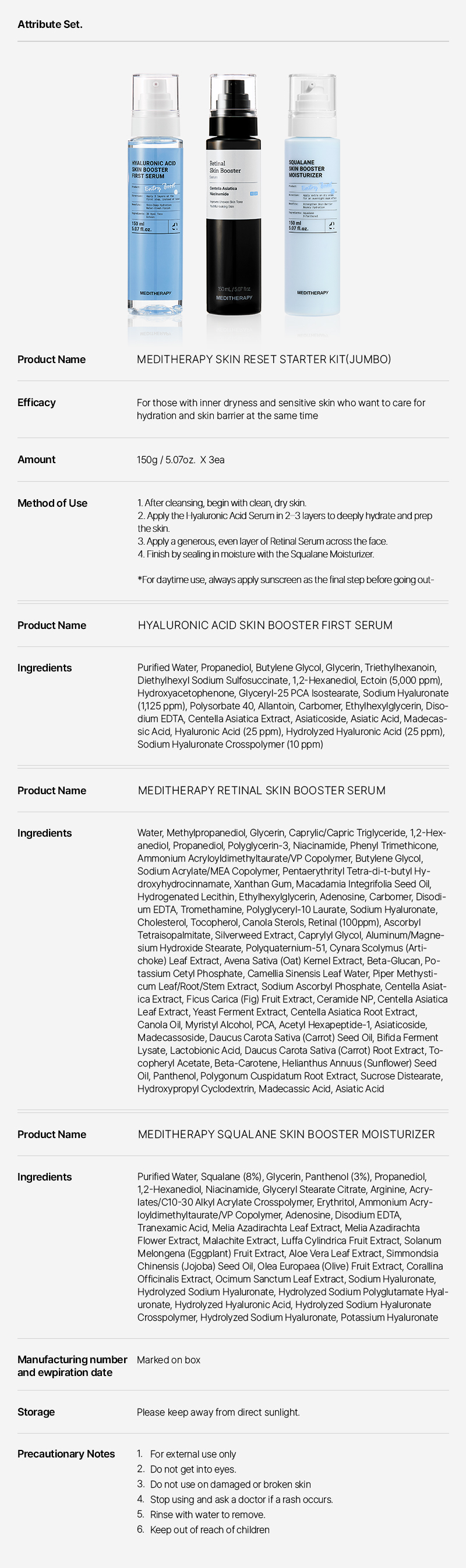 [MEDITHERAPY] Hyaluronic Acid Skin Booster First Serum + Retinal Skin Booster Serum + Squalane Skin Booster Moisturizer