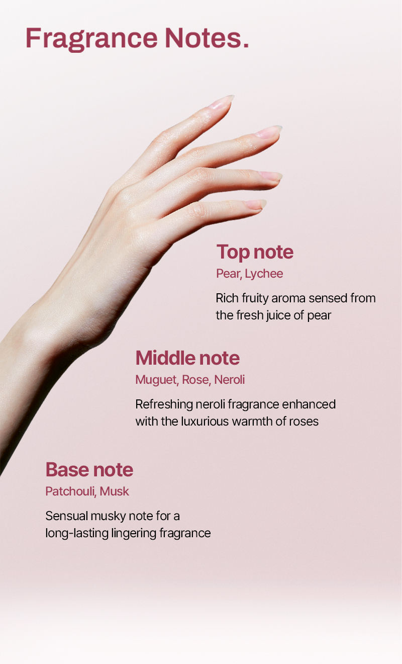 ✔[Use 5 Natural Vegetable Oils] 24-Hour moisture retention effect by 145% ✔[Contain 0.1% Pomegranate Kombucha + Collagen] Improve hand moisture up to 504% ✔[Rose X Musk Scent] Completed non-irritating test ✔ Suitable for those who want to improve dry hands and improve gloss of their nails