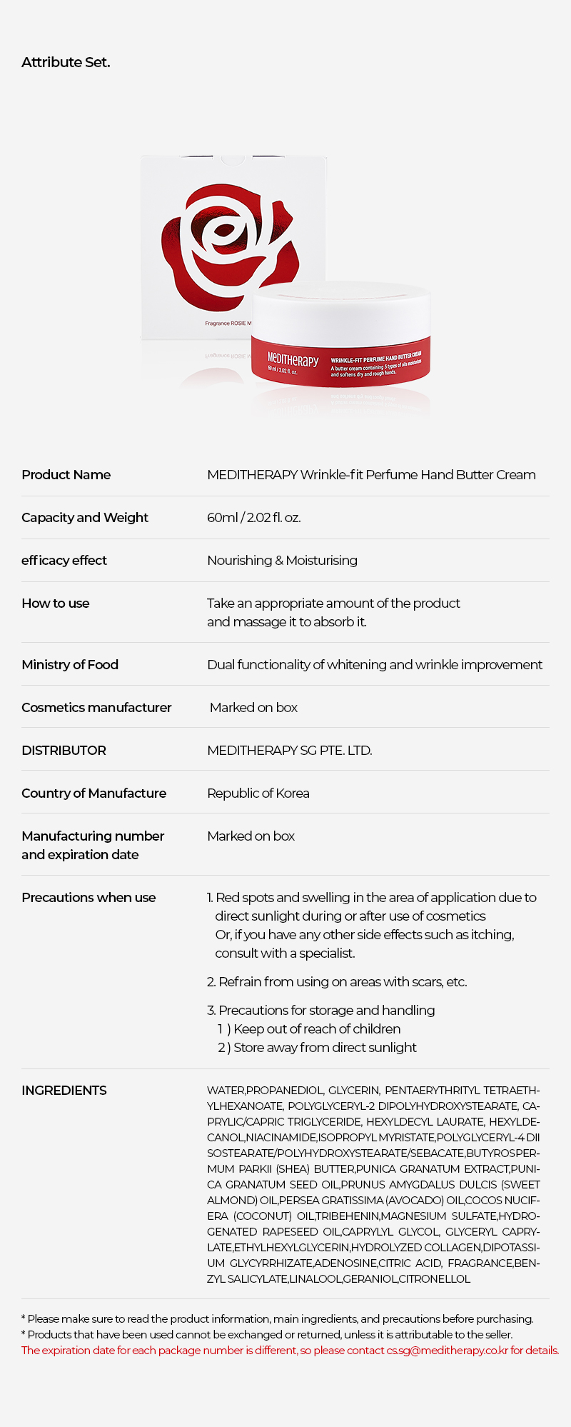 *** Wrinkle-Fit Perfume Hand Butter Cream has under 1 year shelf life—please use before expiry