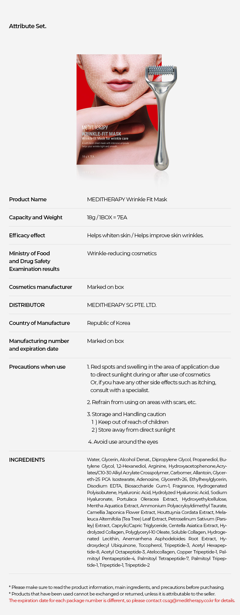 [MEDITHERAPY] Wrinkle-fit Tangle Collagen Eye Patch 1+ Wrinkle-fit Mask 1 + Needle Roller 1